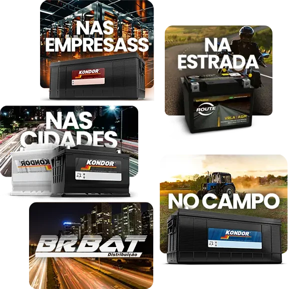 Na BRBAT, você encontra baterias de alto desempenho para diversas aplicações. Trabalhamos com as baterias Kondor, que oferecem linhas como Free, Super Free, EFB, Com Manutenção e Nobreak, e as renomadas baterias Route. Seja para veículos leves, pesados ou sistemas estacionários, temos a solução ideal para manter você sempre em movimento.